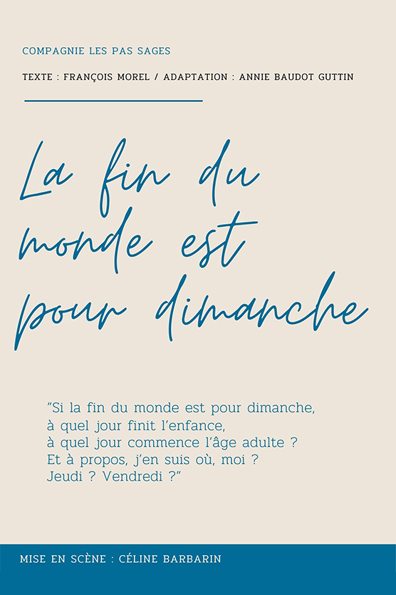 La fin du monde est pour dimanche Cie Les pas sages – au Chok TheatrePublié 18 juillet 2022 aux dimensions 556 × 834 dans La fin du monde est pour dimanche. https://i0.wp.com/choktheatre.com/wp-content/uploads/2022/07/La-fin-du-monde-est-pour-dimanche-Cie-Les-pas-sages-au-Chok-Theatre.jpg?fit=556%2C834 La fin du monde est pour dimanche Cie Les pas sages – au Chok Théâtre le 12 et 13 janvier 2023